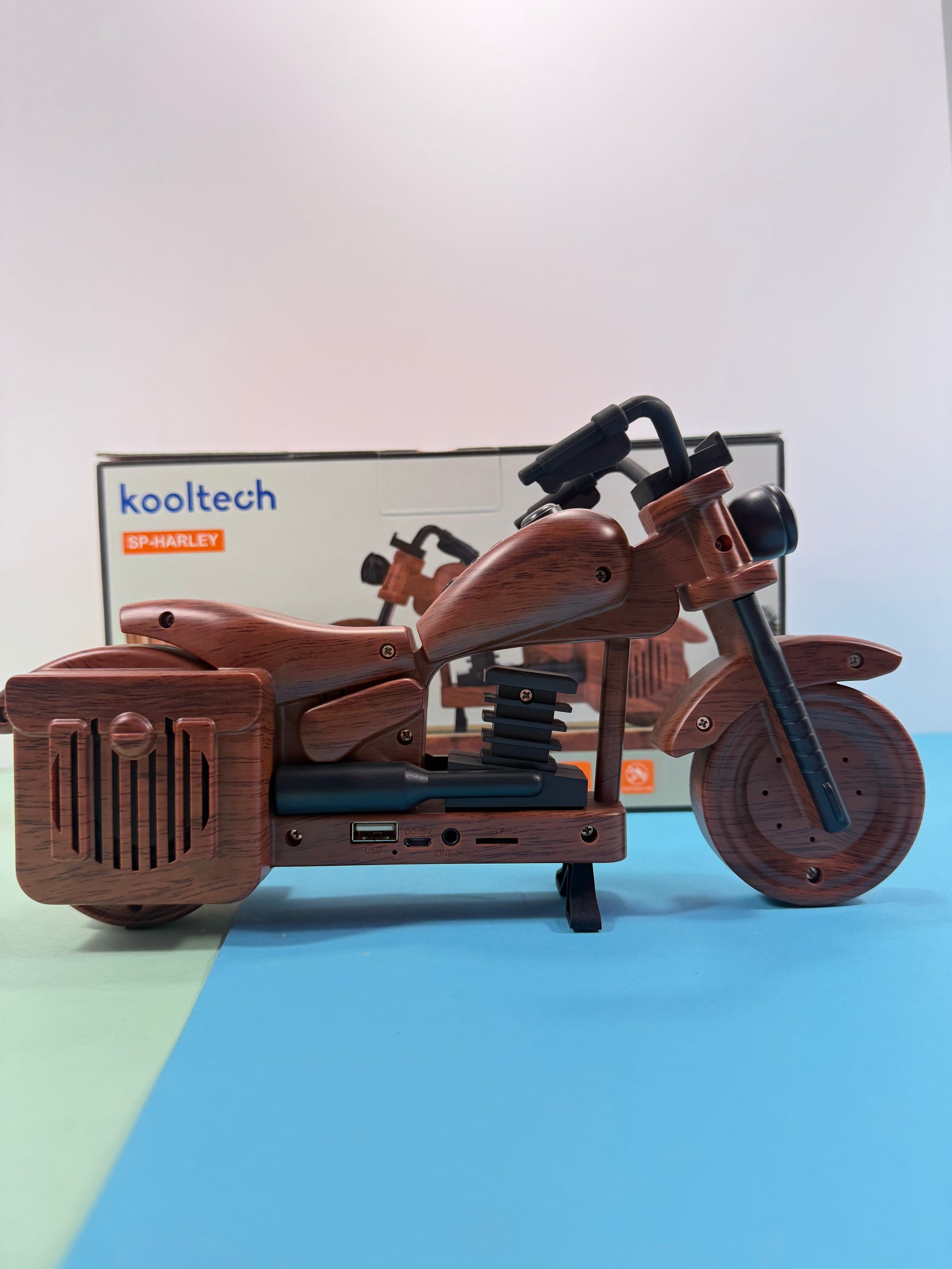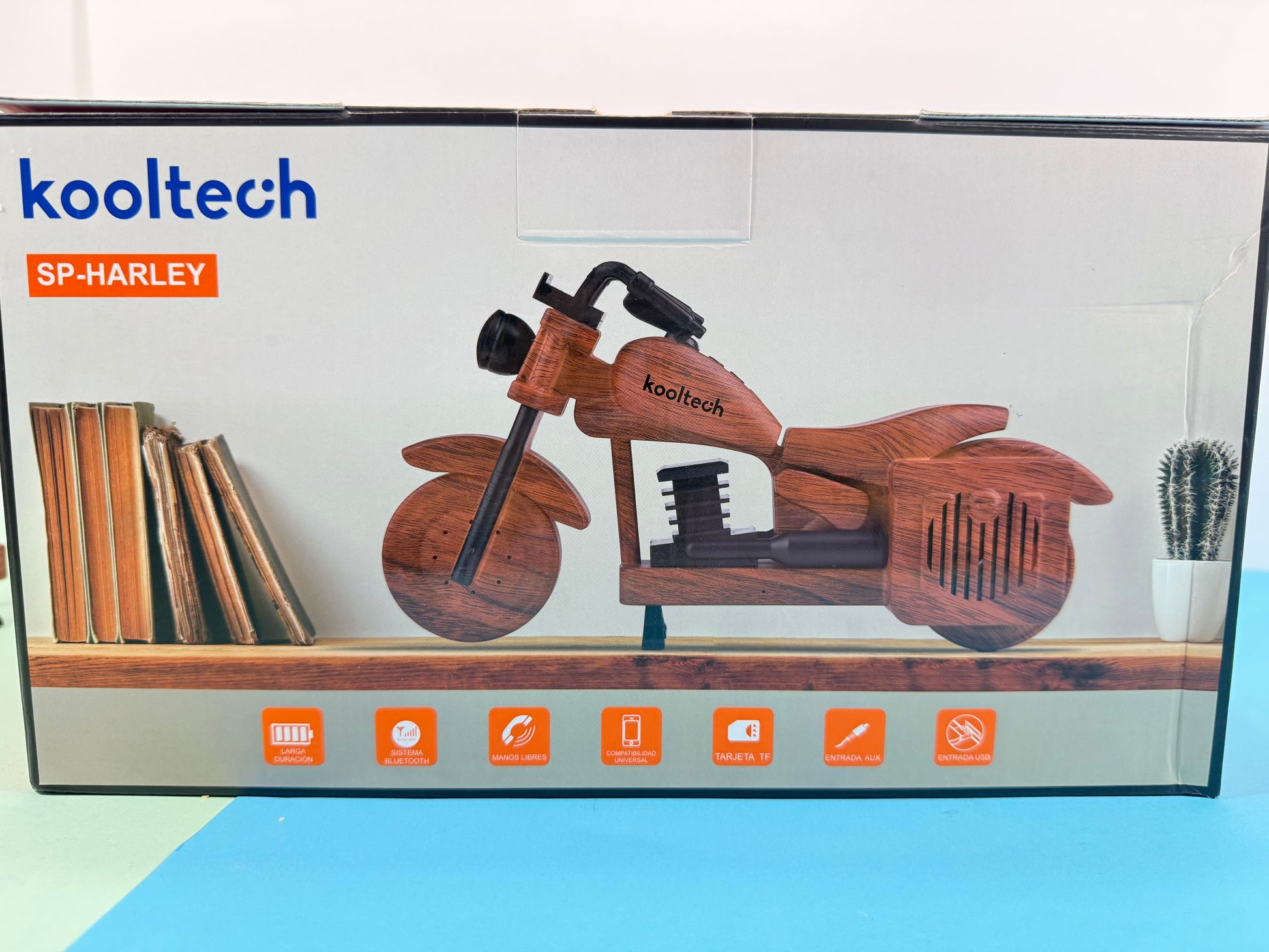 El Kooltech SP-HARLEY es un altavoz Bluetooth con un original diseño en forma de motocicleta, ideal para decoración y para disfrutar de música con estilo. Combina buen sonido, conectividad moderna y función manos libres en un diseño decorativo muy llamativo.